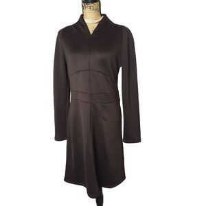 Athleta Cassidy Ponte Knit Dress M Long Sleeve Scuba 1/2 Zip Chocolate V- Neck.