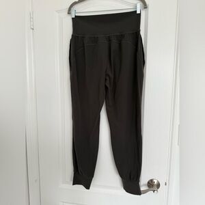 Elevate your style with these comfy olive green high-waisted joggers. Perfect for any occasion, they offer comfort and style.