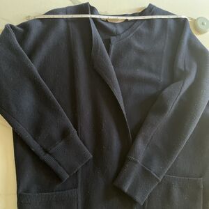 Athleta Wool Blend Open Front Sweater Cardigan Women Size XS Oversized Navy Blue