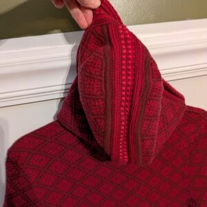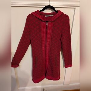 Athleta Wool Blend Red Zip Up Sweater with Nordic Design M