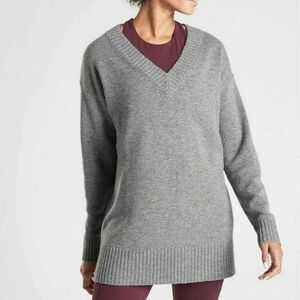 Athleta Wool Cashmere V Neck Long Sleeve Tunic Gray Sweater Cozy Minimalist M