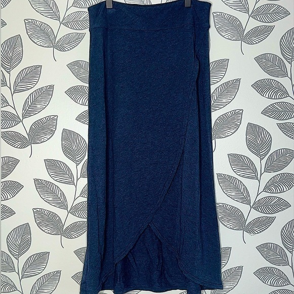 Athleta brand pull on wrap skirt. Blue. Size x-small. Wide waist band. Soft & stretchy material. Super comfy & mobile. Great for running errands or outdoor activities. Preloved. Please see all photos for condition. Elastic.