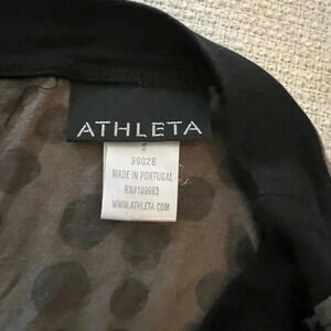 Elevate your wardrobe with this stylish Athleta wrap dress in a beautiful taupe and black print. The dress features a flattering V-neckline and 3/4 length sleeves making it suitable for a range of occasions including travel, casual wear, work, and business meetings. The pullover closure and stretchy polyester blend material ensure a comfortable and effortless fit, while the knee-length design adds a touch of sophistication.