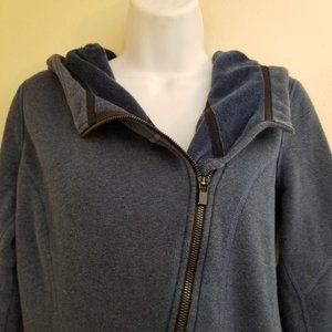 Athleta XS Blue COZY KARMA Sweatshirt Side Zip Hood Velour Lined
