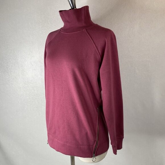 Athleta Sweatshirt Women's sz XS Cozy Karma Side Zip Funnel Neck Pullover Dusty Pink