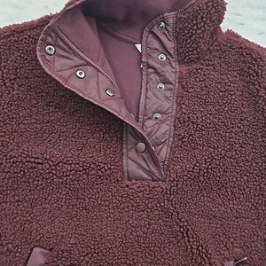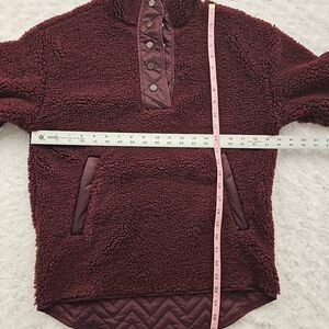 Athleta Cozy Sherpa Snap Sweatshirt 466888 Maroon Wine Red Size XS New Without Tags
