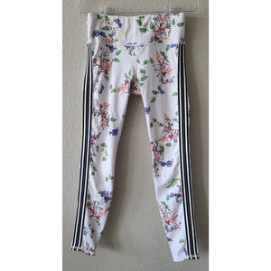 Athleta XS Leggings Contender Blossom 7/8 Length Floral Stripes White Athletic