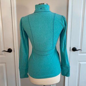 Teal 1/4 to 1/2 zip jacket with thumb holes from Athleta.
