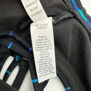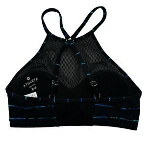 Athleta XXS Swim Bikini High Neck Mesh strappy back Top padded bra sports stripe