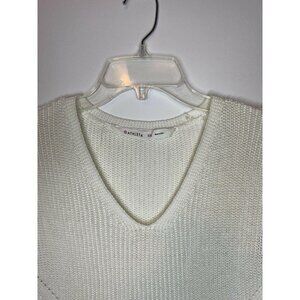 Athleta White Waffle Knit Cotton Blend V-Neck Sweater Size XXS Long Sleeve EUC. Hi-Low Hem with large Slit.
