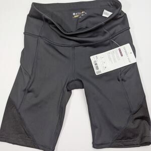 Athleta XXS black Contender 9" Shorts biker knee length zip pocket run gym 00