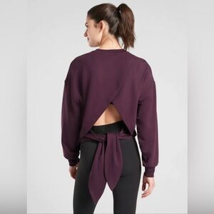 Athleta Yoga Tie Back Sweatshirt Agate Purple Crew Neck Size Medium