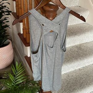 Great pre loved condition size small dark gray in color, cute criss cross open back detail. Great for the gym