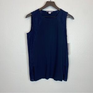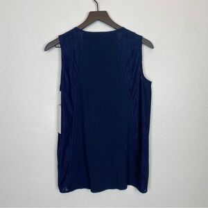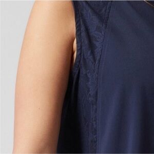 Athleta Zephyr Floral Lace Tank Top Blouse Navy Blue