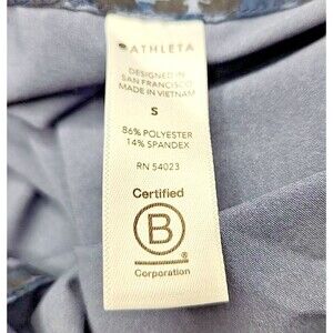 This Athleta Zephyr tank top features a trendy leopard print in indigo and black, perfect for a workout or casual day out. The top has a round neckline and wide straps with a pullover closure, making it easy to put on and take off. It is made lightweight and machine washable for easy care and cleaning. The tank top is designed with an athletic fit, making it perfect for any physical activity. It is available in size S and is a regular fit. The top is part of the brand's basic collection and is perfect for women who love animal-themed clothing. Smoke Free Home Approx Measurements: Pit to Pit: 18.5 Inches Shoulder to Shoulder: 11 Inches Garment Length: 25 Inches Bin 9