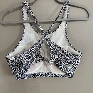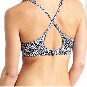 Athleta Zimbabwe Leopard Print High Neck Swim Top Black and White Size 38 B/C
