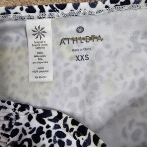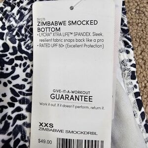 Athleta Zimbabwe Smocked Bottom swim bikini bottom black blue white animal XXS