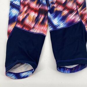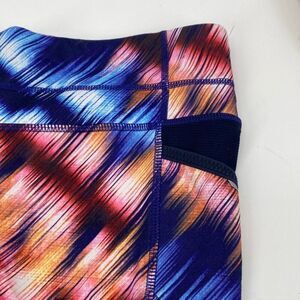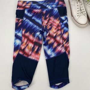 Athleta Zoom Be Free Crop Capri Athetic Legging Tights Pockets Colors :Blue/Multi