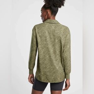 Athleta Zuma Printed Top in Viper Shadow Olive Green, Size XS.