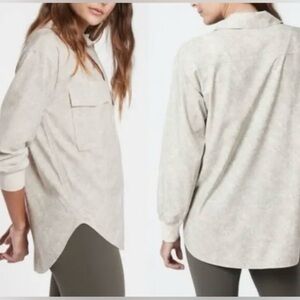 Athleta ‘Zuma’ Relaxed Long Sleeve Blouse Collared Tunic Shirt in Viper Grey