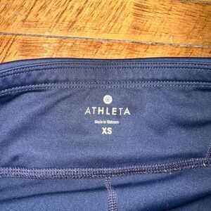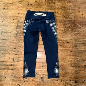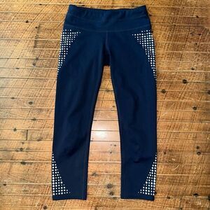 Athleta Sonar Gel dot, Athleisure, cropped, workout leggings. Great for a variety of workouts. Approximately 12 inches across the waist, 7 inch rise, and 22 inch inseam. In good, used condition. From a pet and smoke free house.