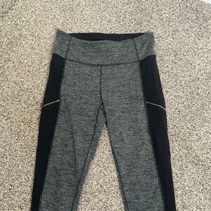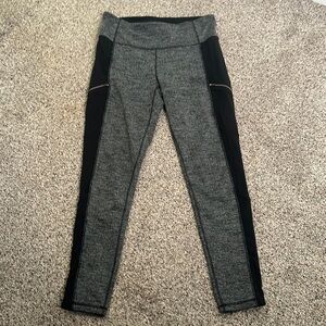 Athleta black and gray leggings size large has pockets with zip great condition high rise the inseam is 28 inches