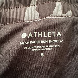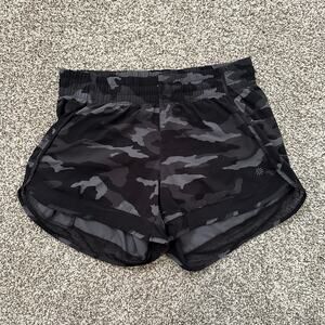 Athleta black camo Mesh Racer Run 4" shorts size S