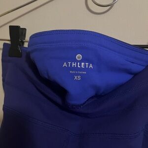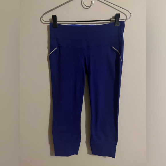 Athleta bright blue reflective rear pocketed Capri leggings size extra small