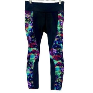 Athleta black and colorful mesh leggings size small back key pocket with zipper