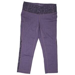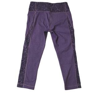 Athleta crop yoga legging purple with black filigree pattern panel small
