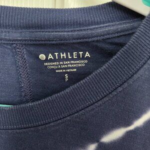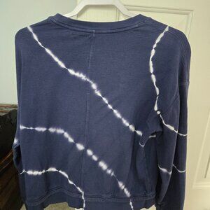 cropped navy blue and white stripe athleta sweatshirt. Fit is loose. Warn only a few times.