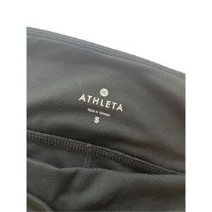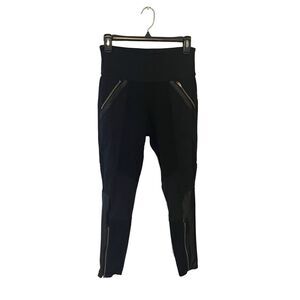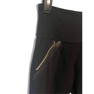 Great condition Athleta high waisted athletic pants with faux leather trim and zip front pockets and zip bottoms.