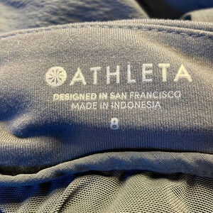 Athleta woman’s grey workout pants they have a little bit of elastic in the waist. They are a size 8.