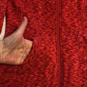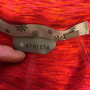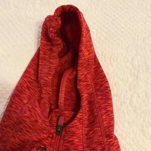 Athleta pink and orange zippered hoodie with two open pockets and one zippered pocket on left sleeve. Size XS.