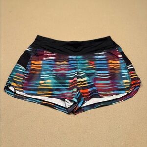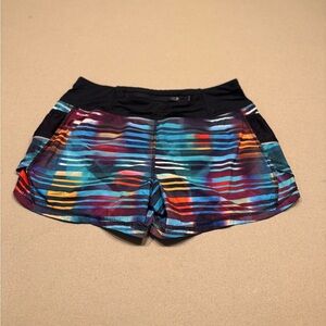 Experience ultimate comfort and style with Athleta's athletic shorts, featuring a vibrant red and blue color scheme. Designed for performance, these shorts are crafted from lightweight material, perfect for any workout or sports activity. The dynamic design adds a touch of energy to your athletic wardrobe. 4” inseam