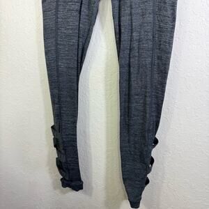 gray leggings with criss cross hem detail. Perfect for casual / workout athletic wear.