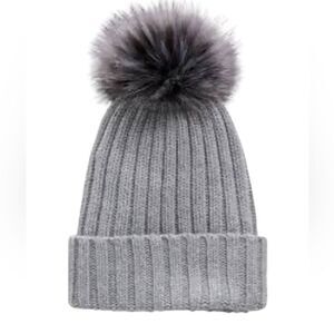 Athleta light gray beanie with darker gray pom wool blend