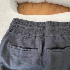 Athleta linen wide leg pant, size 2 in Black. Zippered front pockets, very airy and lightweight for warm temps. Elastic waistband. Gently used.