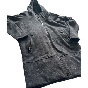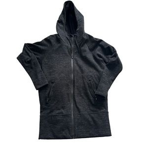 Athleta long zip up hooded jacket in a heathered black/grey