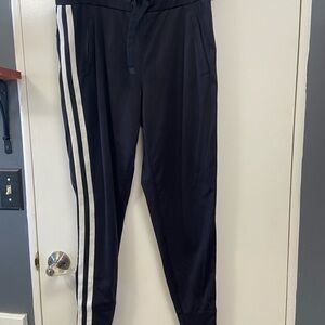 Athleta medium, zipper pockets, white stripes black joggers $75
