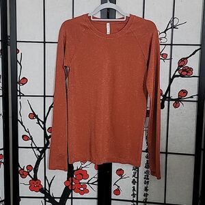 Athleta nwt Momentum Seamless Long Sleeve Top Size Small Orange Shimmer