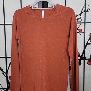 Athleta Momentum Seamless Long Sleeve Top Size Small Orange Shimmer