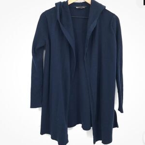 Athleta open front hooded cardigan sweater knit navy blue cotton blend