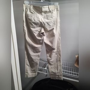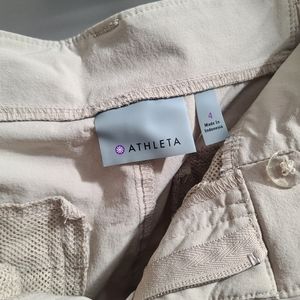 2 Athleta capri stretch pants sz 4. tan, and navy blue. identical