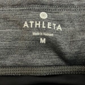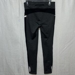 Athleta Powerlift Warm Training Leggings in size M feature a shaping waist design for a flattering fit. These gray jogger-style leggings are ideal for activewear with reflective details for visibility. Pants are in great condition. Geometric design on side panel.