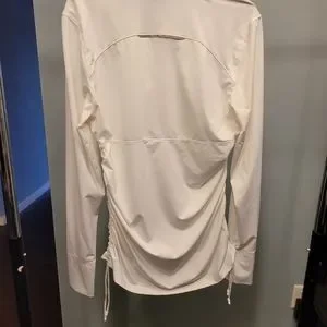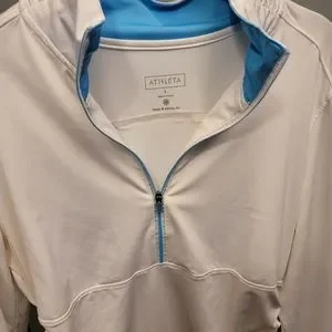 Athleta quarter zip white pullover size large approx 20" bust good preowned condition...tiny mark on one of the arms...see last pic