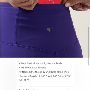 Athleta purple high waist boot/flare front slit yoga pants/leggings Small/ TALL