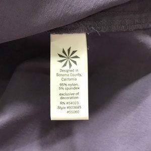 Pretty lavender skirt with a dainty floral lining on the waistband. Waistband can be turned down and tied with the string waist band. Snap side pockets.