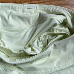 Athleta run with it short sz S pale yellowish green color EUC liner cinch tie pocket