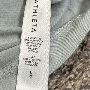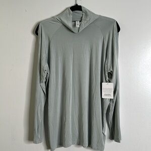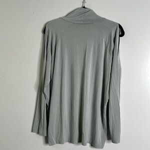 Athleta sage green open shoulder high neck top size large new armpit to armpit 21 inches shoulder to hem 27 inches